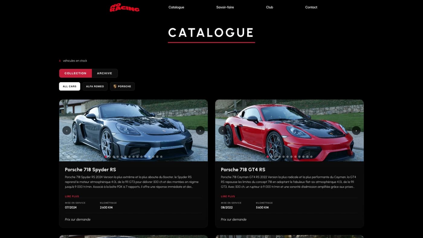 Site immersif de vente de voitures et produits de luxe automobile